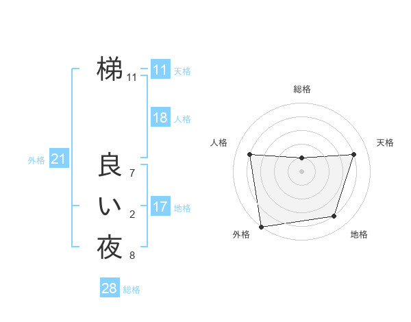 梯 良い夜さんを姓名の画数から五運を鑑定