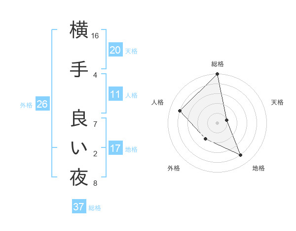 横手 良い夜さんを姓名の画数から五運を鑑定