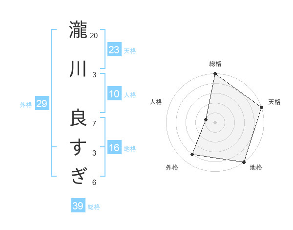 瀧川 良すぎさんを姓名の画数から五運を鑑定