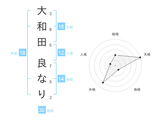 大和田 良なりさんを姓名の画数から五運を鑑定