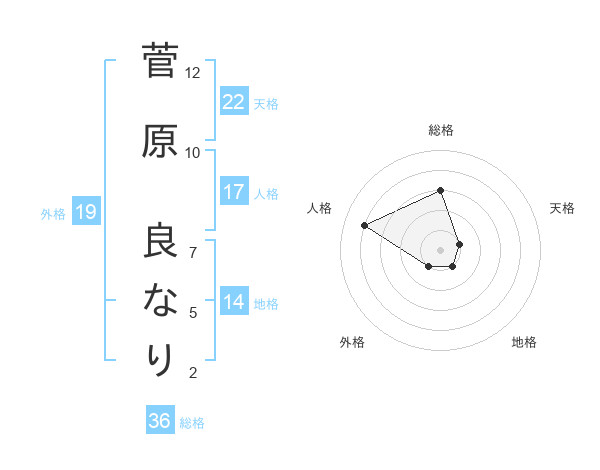 菅原 良なりさんの天格は22画の1点!
