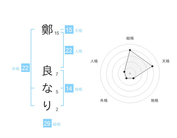 鄭 良なりさんの天格は15画の4点!