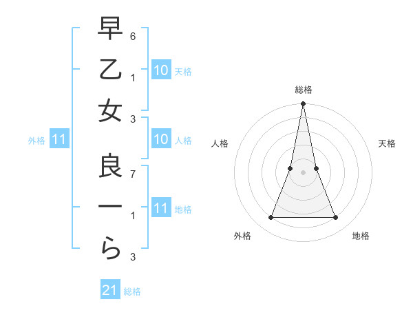 早乙女 良一らさんを姓名の画数から五運を鑑定