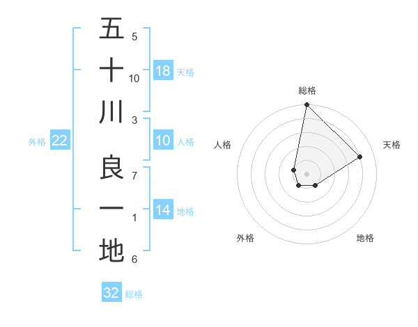 五十川 良一地さんを姓名の画数から五運を鑑定