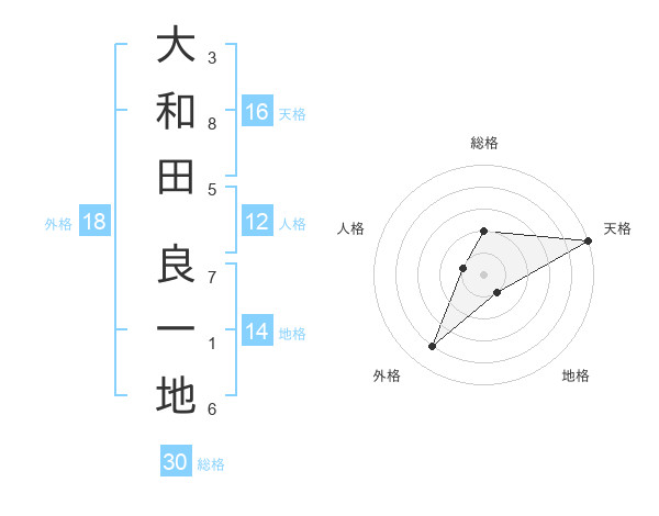 大和田 良一地さんの総格は30画の2点!