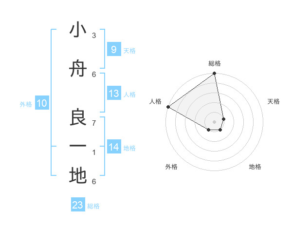 小舟 良一地さんの総格は23画の5点!