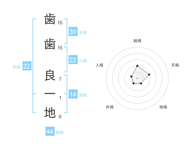 歯歯 良一地さんの総格は44画の2点!