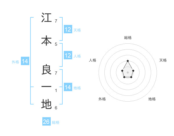 江本 良一地さんの総格は26画の2点!
