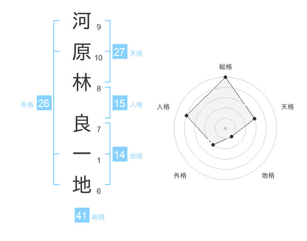 河原林 良一地さんの総格は41画の5点!