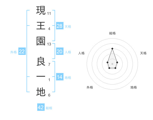 現王園 良一地さんを姓名の画数から五運を鑑定