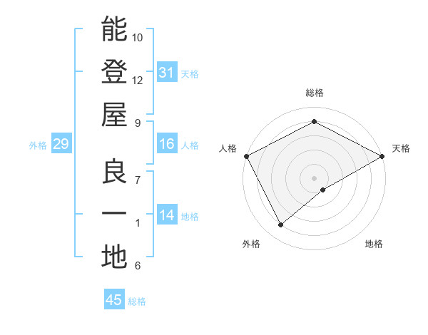 能登屋 良一地さんを姓名の画数から五運を鑑定
