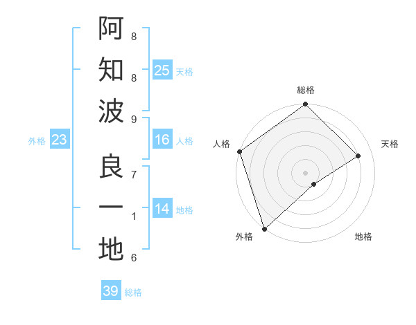 阿知波 良一地さんを姓名の画数から五運を鑑定