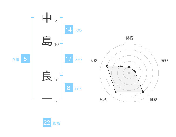 中島 良一さんの総格は22画の1点!