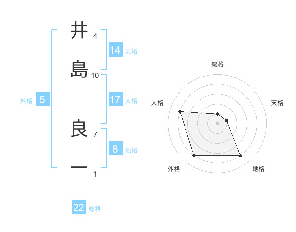 井島 良一さんの総格は22画の1点!
