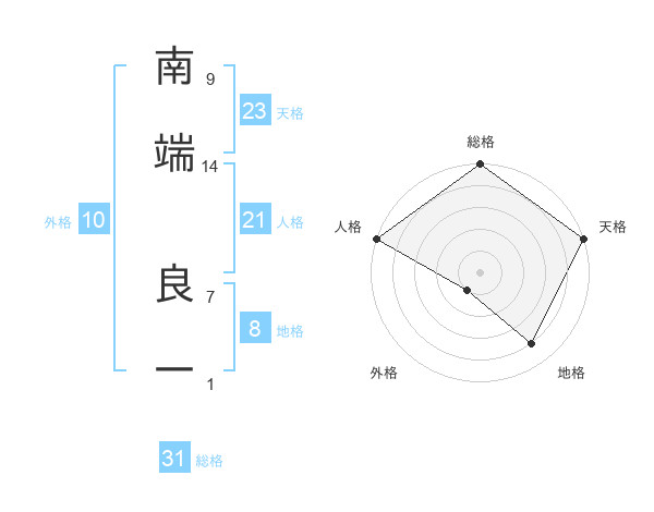 南端 良一さんの総格は31画の5点!