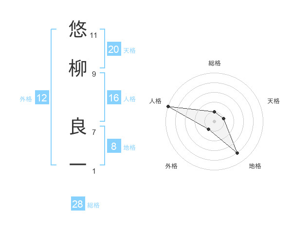 悠柳 良一さんの天格は20画の1点!