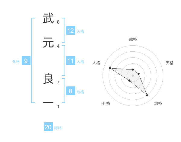 武元 良一さんの総格は20画の1点!