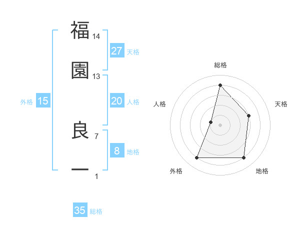 福園 良一さんの総格は35画の4点!