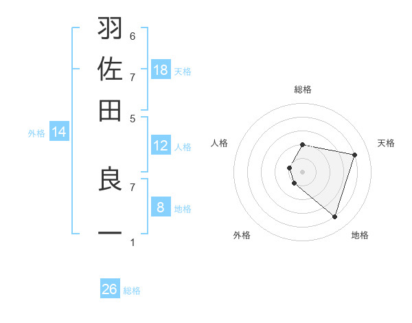 羽佐田 良一さんを姓名の画数から五運を鑑定