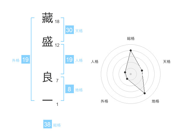 藏盛 良一さんの総格は38画の4点!