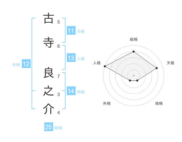 古寺 良之介さんの総格は25画の4点!