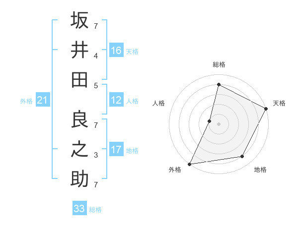 坂井田 良之助さんの外格は21画の5点!