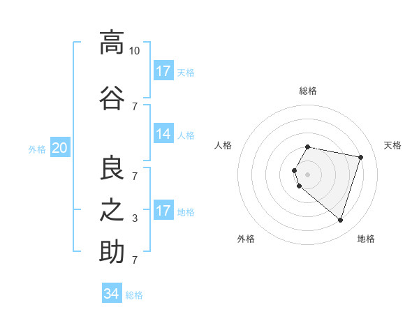 高谷 良之助さんを姓名の画数から五運を鑑定
