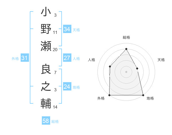 小野瀬 良之輔さんを姓名の画数から五運を鑑定