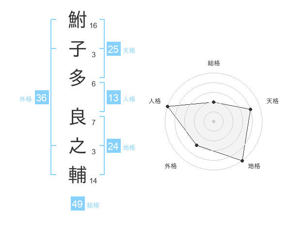 鮒子多 良之輔さんを姓名の画数から五運を鑑定