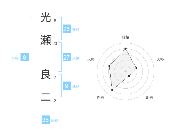 光瀬 良二さんの総格は35画の4点!