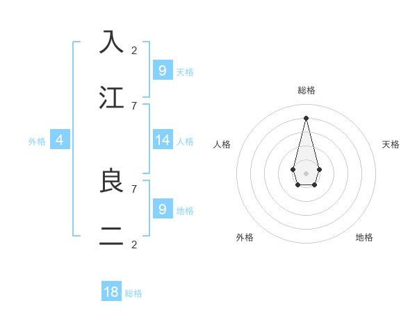 入江 良二さんの総格は18画の4点!