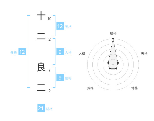 十二 良二さんの総格は21画の5点!