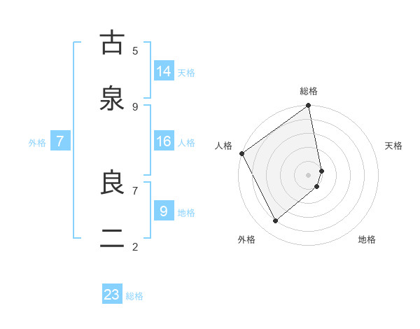 古泉 良二さんの総格は23画の5点!