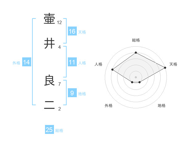 壷井 良二さんの総格は25画の4点!