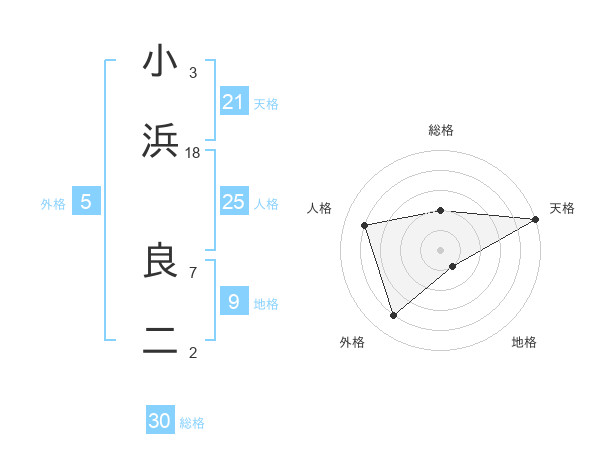 小浜 良二さんの天格は21画の5点!