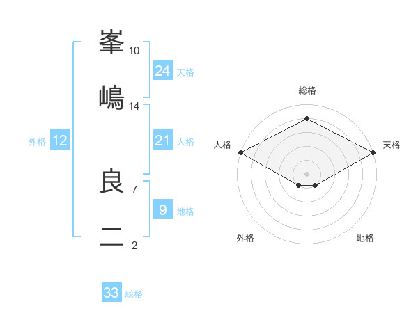 峯嶋 良二さんの総格は33画の4点!