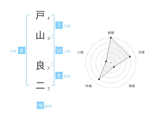 戸山 良二さんの総格は16画の5点!