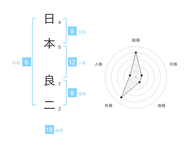 日本 良二さんの総格は18画の4点!