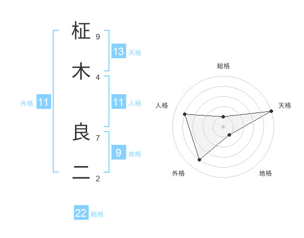 柾木 良二さんの天格は13画の5点!