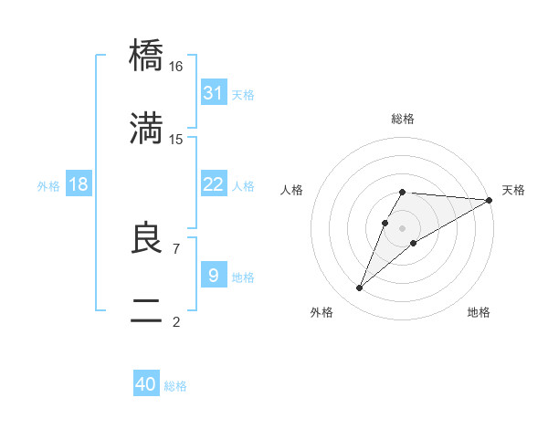 橋満 良二さんの天格は31画の5点!