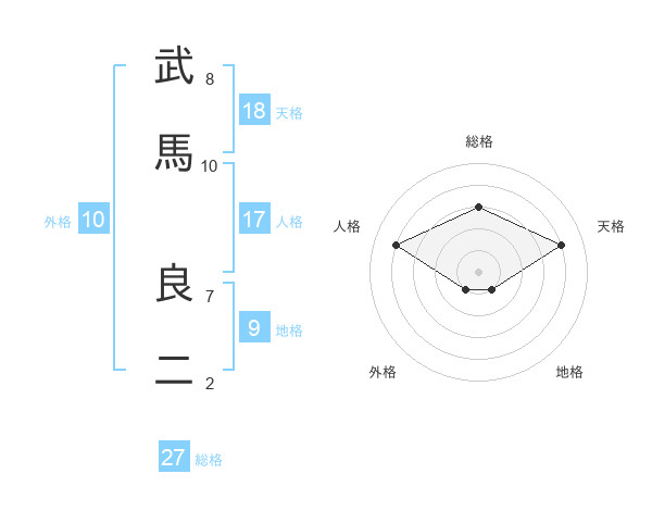武馬 良二さんの総格は27画の3点!