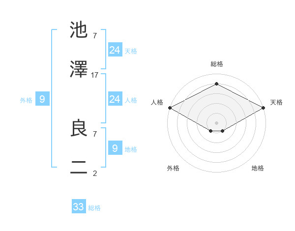 池澤 良二さんの総格は33画の4点!
