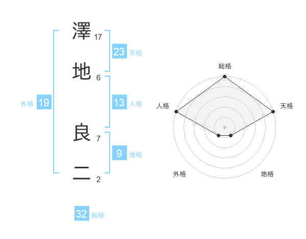 澤地 良二さんの総格は32画の5点!