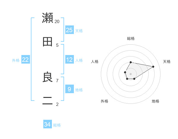 瀬田 良二さんの総格は34画の2点!