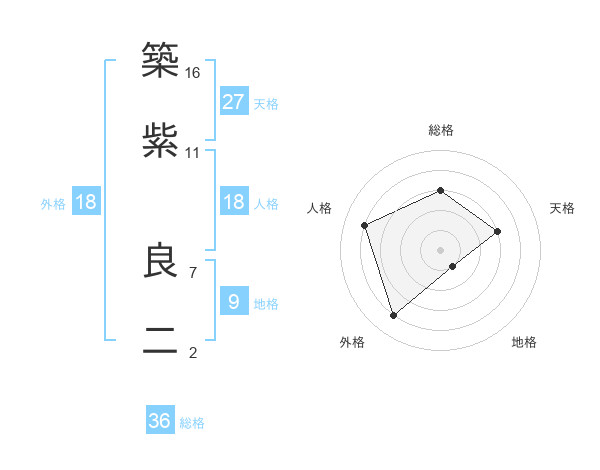 築紫 良二さんの総格は36画の3点!