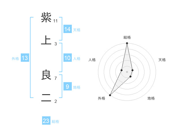 紫上 良二さんの外格は13画の5点!