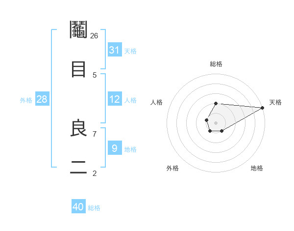 鬮目 良二さんの外格は28画の1点!