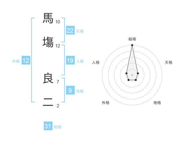 馬塲 良二さんの総格は31画の5点!