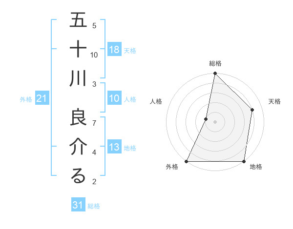 五十川 良介るさんを姓名の画数から五運を鑑定