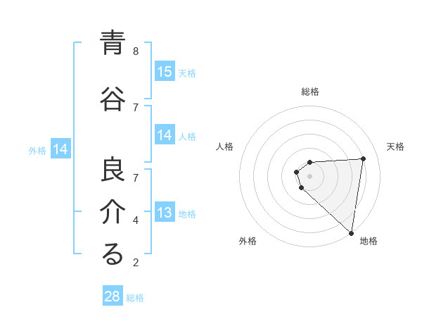 青谷 良介るさんを姓名の画数から五運を鑑定